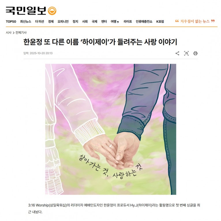 [기사] 한윤정 또 다른 이름 ‘하이제이’가 들려주는 사랑 이야기(국민일보)