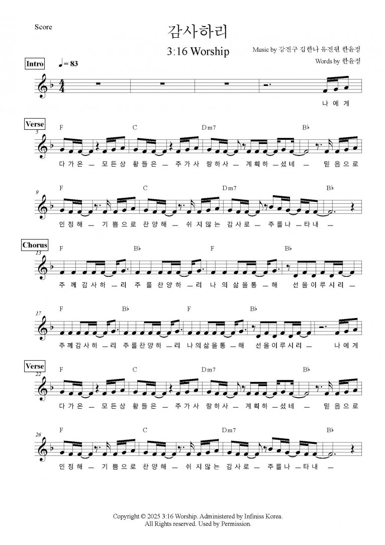 [MV,악보] 감사하리 - 3:16 Worship (Sanctification)