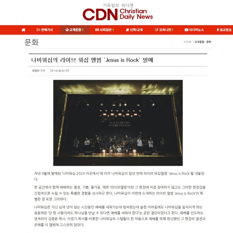 [기사] 나비워십의 라이브 워십 앨범 'Jesus is Rock' 발매(기독일보 씨디엔)
